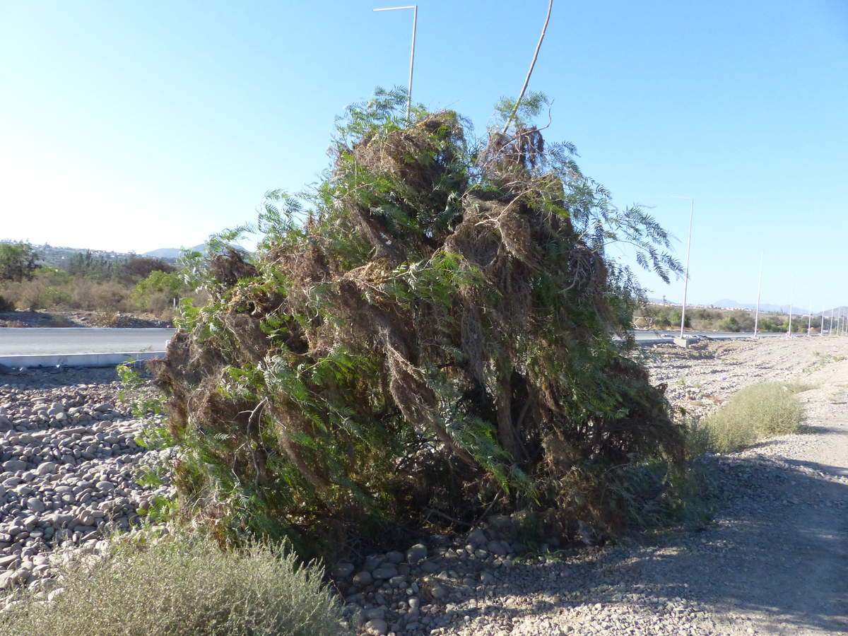 Foto: Cuscuta tinctoria auf einem Peruanischen Pfefferbaum am Stadtrand von Ovalle, Chile