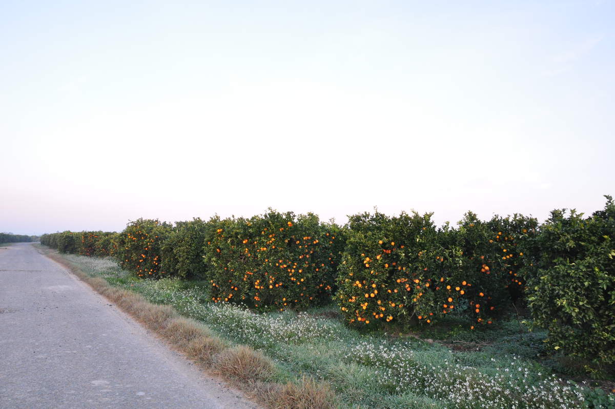 Foto: Sevilla Umgebung bei Sonnenaufgang, Orangenplantage - Portugalreise; dk, Dezember 2015